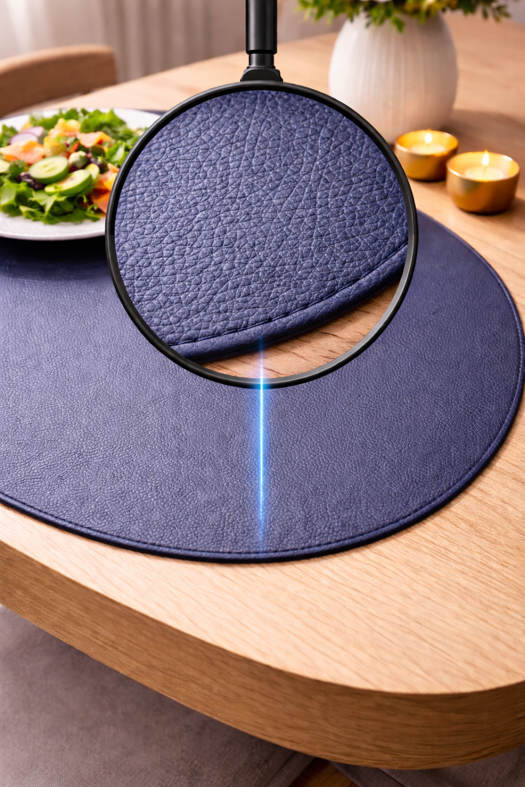 O Kit Jogo Americano em Couro Sintético transforma qualquer refeição em uma experiência visual elegante, elevando o ambiente com um toque moderno e refinado.